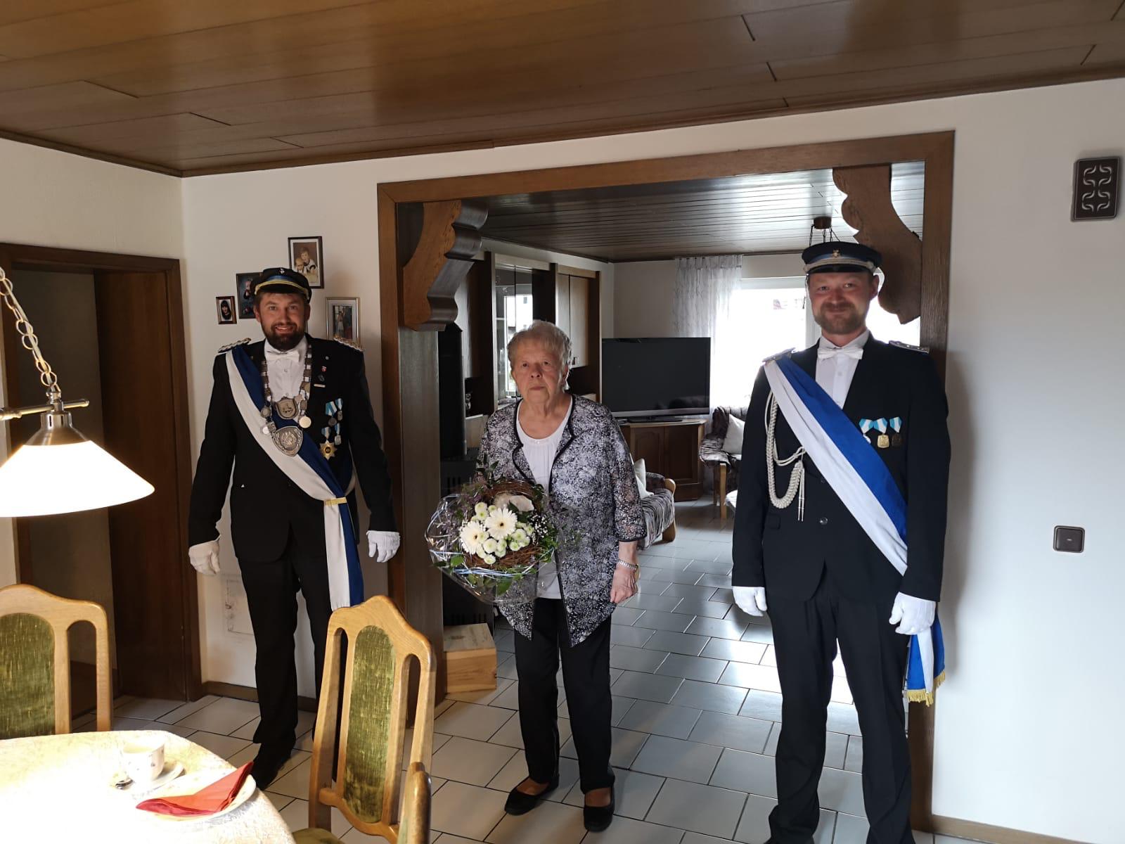 So besuchten Abordnungen der Schützen am Pfingstsonntag die Jubel-Königspaare der Jahre 2020 und 2021. Vor 60 Jahren regierten Hans Dolle und Editha Volmert die Ossendorfer Schützen, vor 50 Jahren Heinrich und Josefine Wigge. Den königlichen Hofstaat führten vor 40 Jahren Karl-Heinz Kohaupt und Bettina Geilhorn an und vor 25 Jahren Heiner und Gabi Fischer. „Selbstverständlich werden wir alle Jubilare beim nächsten Schützenfest standesgemäß hochleben lassen“, verspricht Vereinsvorsitzender Geilhorn.